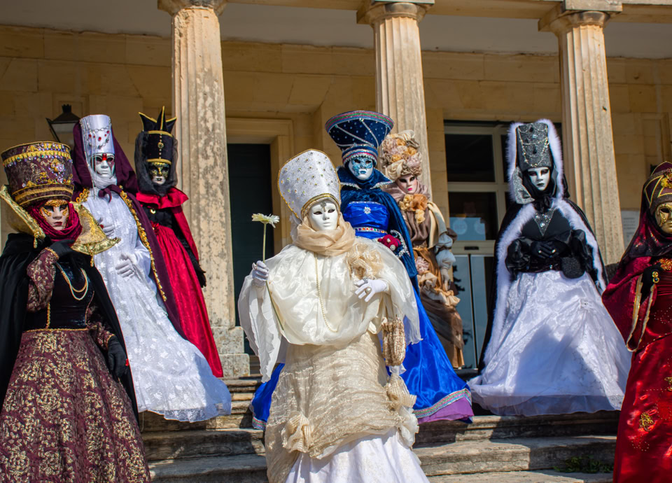 Auf den Ionischen Inseln zwischen Korfu und Zakynthos bestimmt der venezianische Einfluss die eher westlich geprägten Karnevalsfestivitäten. Auf Korfu selbst wird die „Petegoletsa“ als eine Art Straßentheater gefeiert mit prachtvollen venezianischen Kostümen und Masken, angelehnt an die Commedia del Arte.