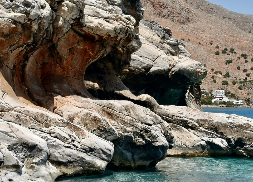Der unzugänglichste Teil der Sfakia, in dem auch der Nationalpark Samaria liegt, eröffnete sich uns in seiner ganzen archaischen Pracht. Während wir der Küstenlinie folgten, schenkte uns jeder Blick vom Boot aus neue Perspektiven auf die zerklüftete Landschaft, die sich dramatisch gegen das endlose Blau abzeichnete.