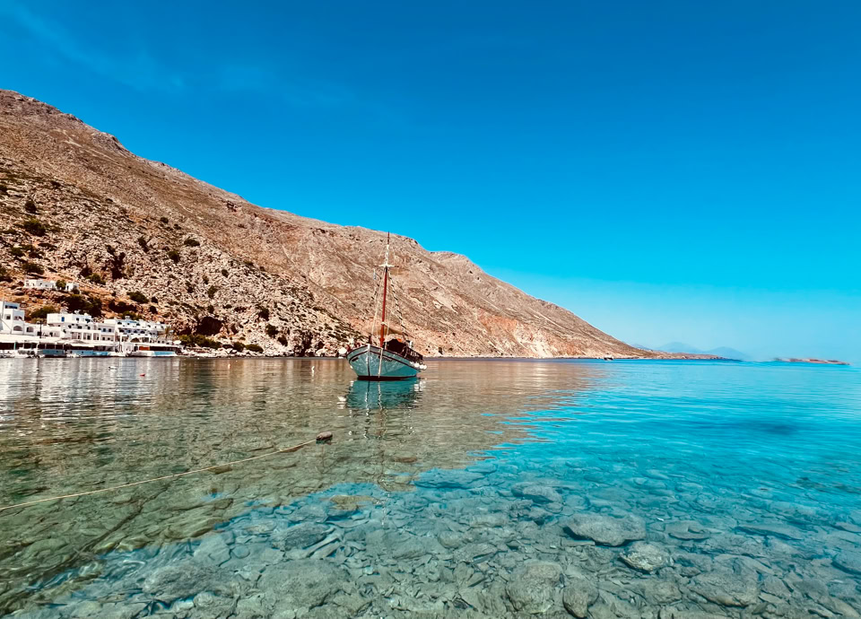 An Bord des kleinen Bootes von Kapitän Stavros glitten wir entlang dieser kaum erschlossenen Südküste, vorbei an schroffen Felsformationen, versteckten Buchten und kleinen Stränden, die nur vom Meer aus oder über schmale Pfade erreichbar sind.