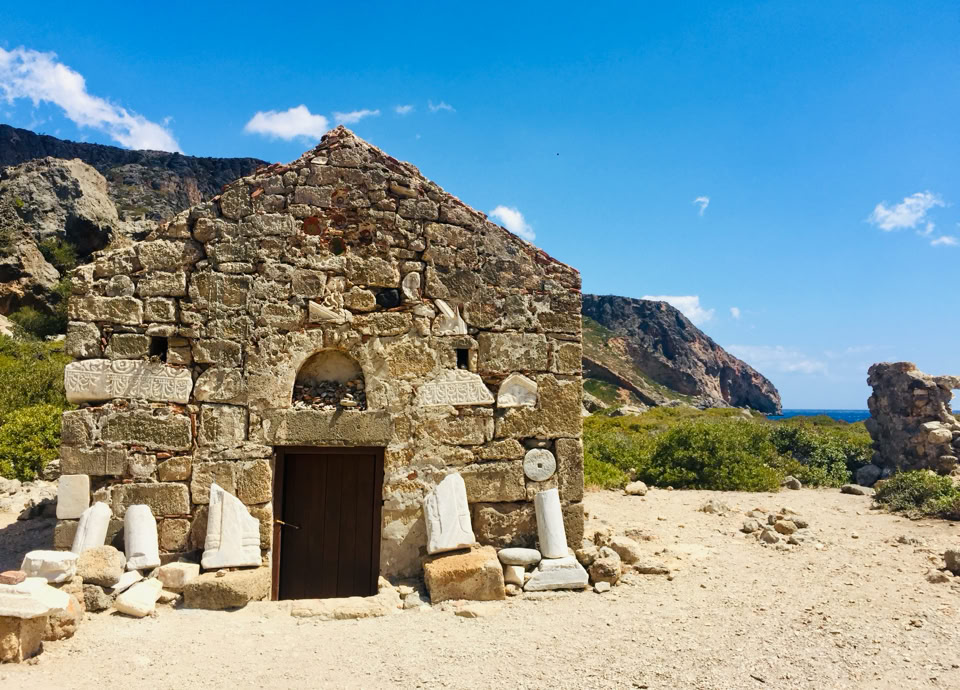 Über die weiten Ausläufer der Weißen Berge erreichten wir schließlich Sougia, einen bis heute beschaulichen Ort an der Südwestküste Kretas. Von dort aus erreichten wir auf einem kleinen Boot die Bucht von Lissos. Hier galt es allen Mut zusammenzunehmen und vom schaukelnden Boot auf bewegter See auf den Felsen an Land zu gehen. Für unseren Wagemut wurden wir alsbald belohnt, als uns nach nur wenigen Schritten die geschützte Bucht mit ihren antiken Schätzen aufnahm.