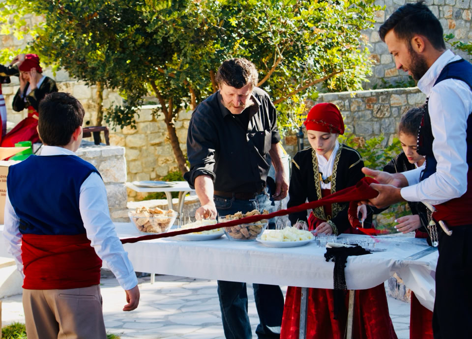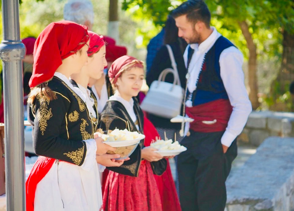 Auch wir machten uns an diesem bedeutenden Festtag von Chora Sfakion aus auf den Weg die vielen Serpentinen hinauf in die atemberaubenden Bergwelten der Region. Wir genossen abwechslungsreiche Aus- und Einblicke in die Landschaft, bevor wir uns von der trubeligen Festtagslaune rund um die Feierlichkeiten im Ort beeindrucken ließen und für eine Weile in das lebendige Treiben aus Menschen, Schafen & Ziegen eintauchten. Staunend verfolgten wir die Segnung der Herden und gar die Gelegenheit die frische Ziegenmilch zu kosten, die in großen Töpfen erhitzt und ausgeschenkt wurde. Dazu wurden kretischer Zwieback und Käse gereicht, also Paximadia und Graviera.