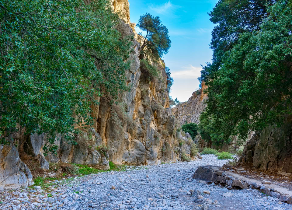 Schluchten prägen das Landschaftsbild der Sfakia. Lange waren sie die einzigen Verbindungswege zwischen den Dörfern, bevor Autos, Straßen und Brücken den beschwerlichen Weg erleichtert haben. Eine davon ist die Imbros-Schlucht durch die einst der Verbindungsweg von Chora Sfakion zur Nordküste verlief. Die Schlucht wartet mit einer spektakulären Engstelle und einer vielfältigen und abwechslungsreichen Vegetation auf. Teilweise auf dem gepflasterten Maultierpfad, teilweise im kiesigen Schluchtbett wandernd, entdecken wir stattliche Bergzypressen, Steineichen & kretischen Ahorn.