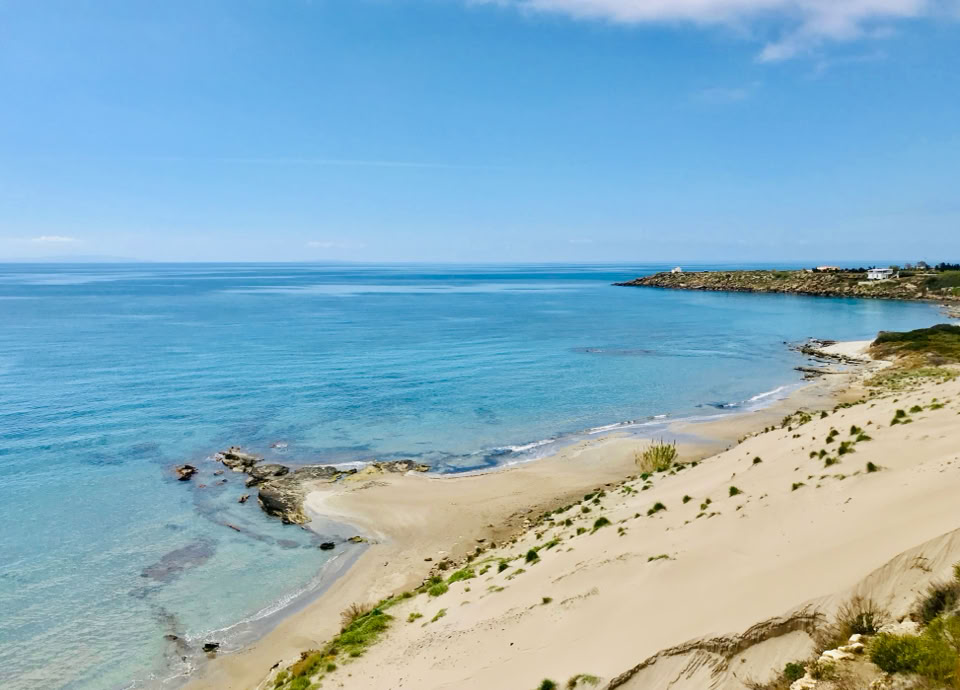 Der traumhafte Strand „Orthi Ammos“ (=aufrechter Sand), der seinen Namen von den hohen, beeindruckenden Sanddünen erhalten hat, ist einer der schönsten Strände Kretas und befindet sich östlich der Burg von Frangokastello. Es ist ein ruhiger, naturbelassener Strand mit goldenem Sand und kristallklarem, flach abfallendem Meer. Am Strand ist ein hellgrauer, mineralischer Ton im Überfluss vorhanden, der für eine schöne Haut sorgt.