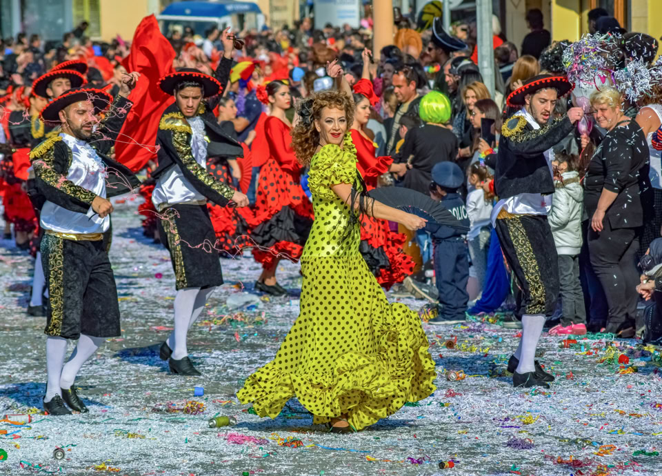 So feiert jede Region Griechenlands Apokries auf ihre eigene Weise. In Tyrnavos improvisieren beim Burani-Fest derb-humorvolle Tänzer zu treibenden traditionellen Rhythmen. In Naoussa erheben sich die Boules und Genitsari in ihren kraftvollen Tänzen gegen die Schatten der Vergangenheit und erinnern an Freiheit und Unabhängigkeit. In Thessalien und Makedonien erklingen die blechernen Glocken der Rougatsia, maskierter Tänzer, die von Dorf zu Dorf ziehen. Und in Patras, der unbestrittenen Hochburg des griechischen Karnevals, leuchten die Straßen in einem Farbenmeer aus Paraden, Musik und ausgelassenem Tanz, nicht unähnlich dem rheinischen Straßenkarneval.