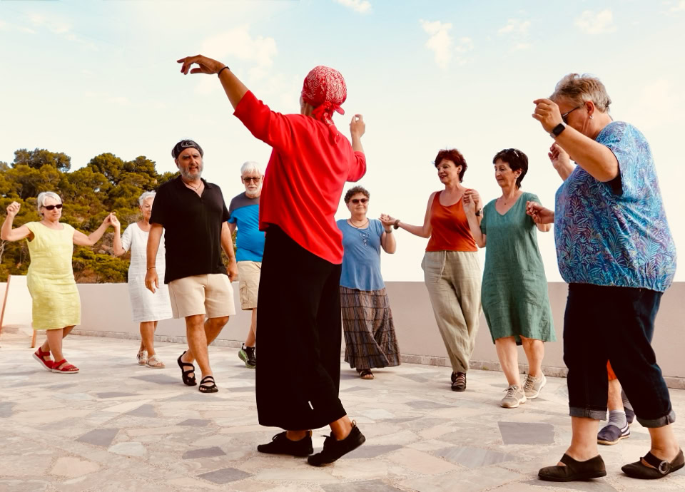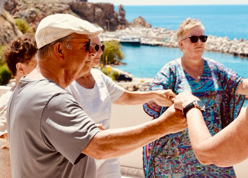 Gemeinsam tauchten wir in die spirituelle Dimension der uralten Rhythmen und Melodien ein und tanzten uns entlang der Tanzstraßen auch auf die Nachbarinseln Kretas. Gleichzeitig erfuhren wir mehr über den mythologischen, historischen und kulturellen Hintergrund der traditionellen griechischen Lieder und Tänze.