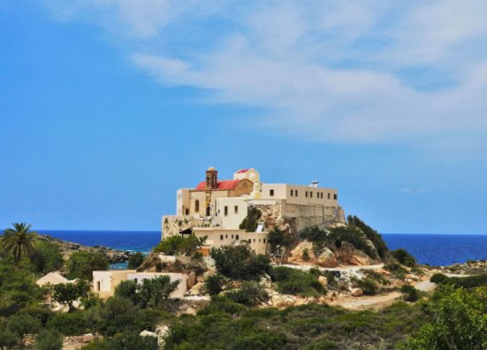 Weiter führte unser Weg durch die dicht bewachsene Schlucht von Topolia hinunter an die dramatisch zerklüftete Westküste. Schon von Weitem erblickten wir das Kloster Panagia Chrysoskalitissa, das wie ein weißer Wächter über dem Felsen thront und uns herrliche Ausblicke entlang der wilden, zerfurchten und spärlich besiedelten Westküste gewährte.