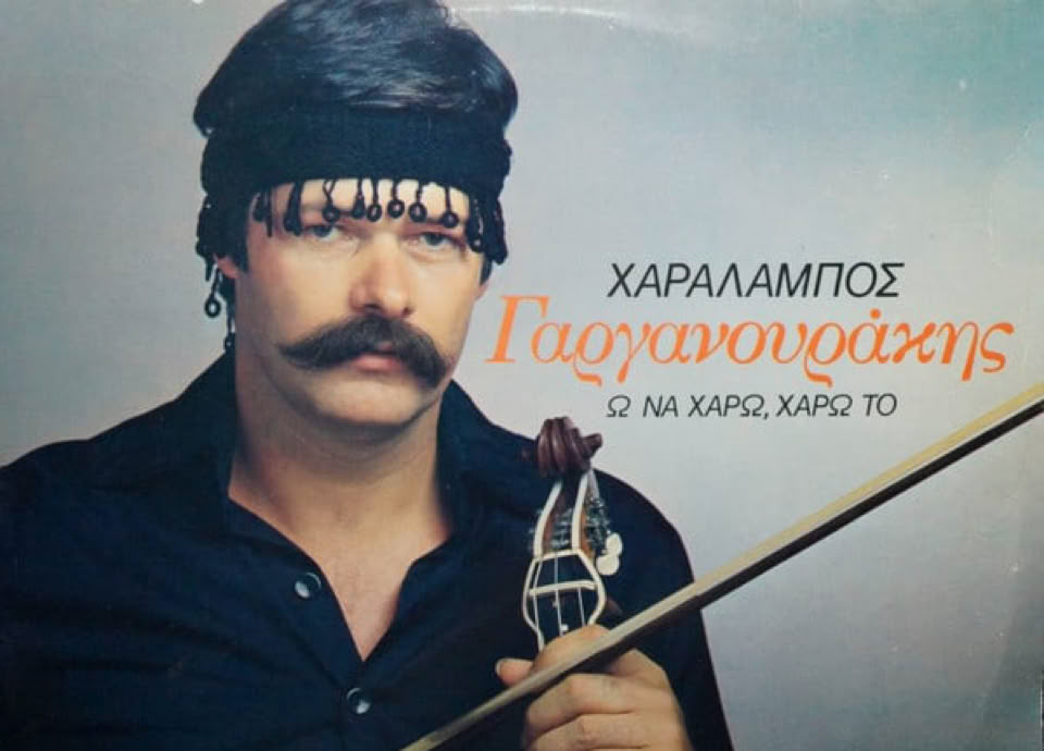 Haralambos Garganourakis, ein bis heute beliebter und angesehener kretischer Musiker, trägt sowohl MOUSTAKI als auch SARIKI, hier in den Anfängen seiner Karriere Mitte der 1960er Jahre.