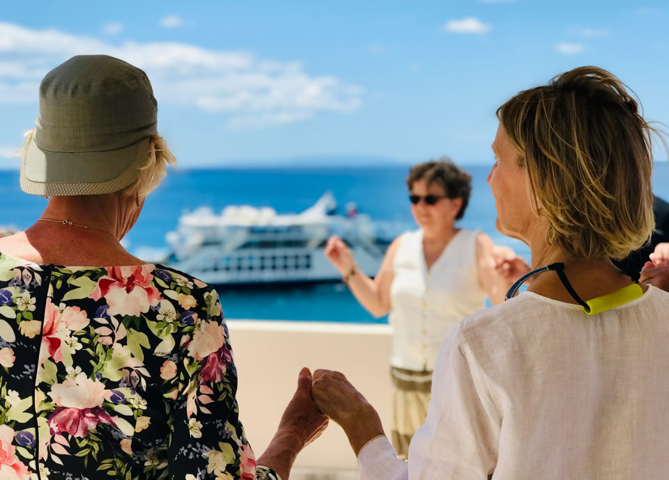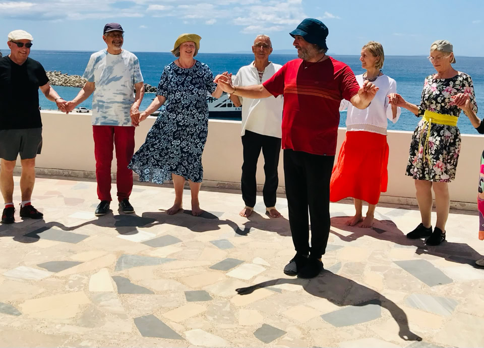 In unseren Tanzeinheiten auf einer großzügigen Dachterrasse hoch über den Dächern von Chora Sfakion feierten wir das Erwachen der Natur im Tanz. Wir ließen uns ausgiebig vom Zauber des Frühlings berühren und in eine freudige Tanz-Stimmung versetzen. Während die vorwitzigen Sonnenstrahlen auf unserer Nase tanzten, zauberte uns eine bunte Vielfalt an griechischen Tänzen ein Lächeln auf die Lippen und ein Strahlen ins Gesicht.