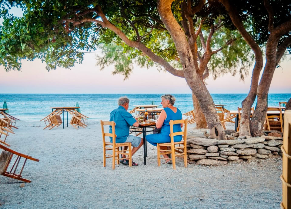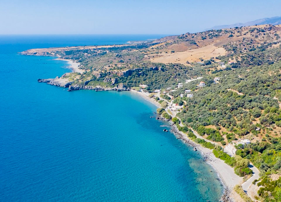 Eingebettet zwischen sanften Olivenhainen, kargen Felsen und dem weiten Blau des Libyschen Meeres laden die drei ruhigen und weitläufigen Buchten zum Verweilen ein. Kleine Tavernen unmittelbar am kristallklaren Wasser, traditionelle Gastfreundschaft sowie eine unaufgeregte Atmosphäre der Entschleunigung garantieren naturnahe Erholung und ganzheitliche Entspannung.